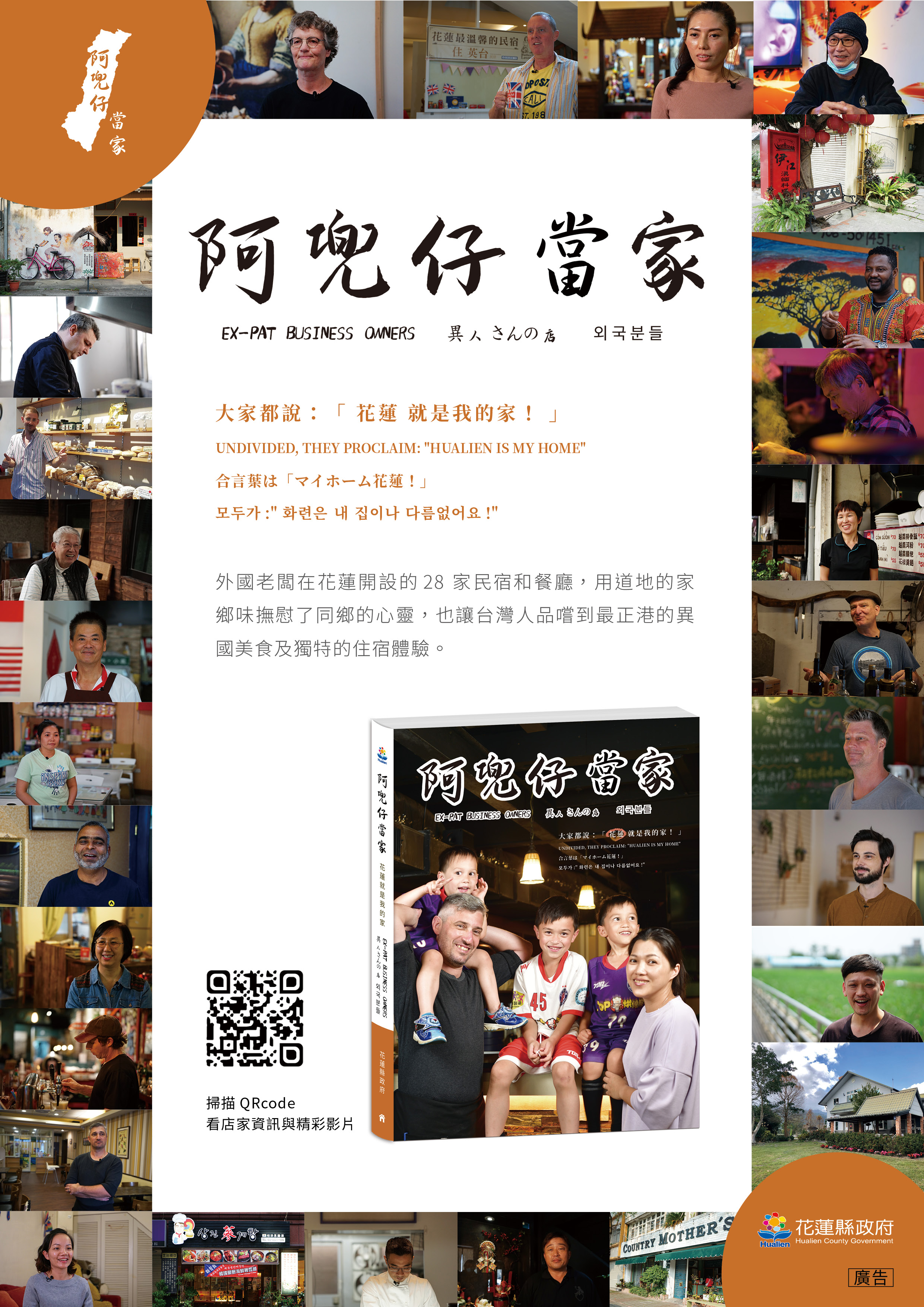 外國老闆們有些因異國戀曲,或是愛上花蓮獨特風景與友善人民,從此落腳花蓮,並把故鄉的美食和文化帶來花蓮,為花蓮注入新生命,透過採訪這些國際移居者,重新以外國人視角閱讀花蓮。民眾可至花蓮縣旅遊服務中心、借問站及全台各大圖書館翻閱,或上《阿兜仔當家》中、英、日、韓文專書網站閱讀,網址為:https://www.hualienmyhome.com/。
